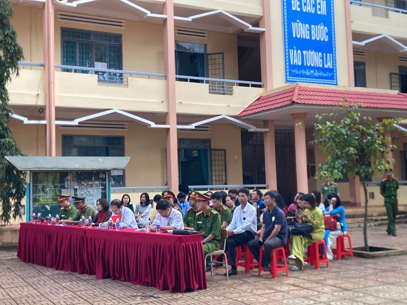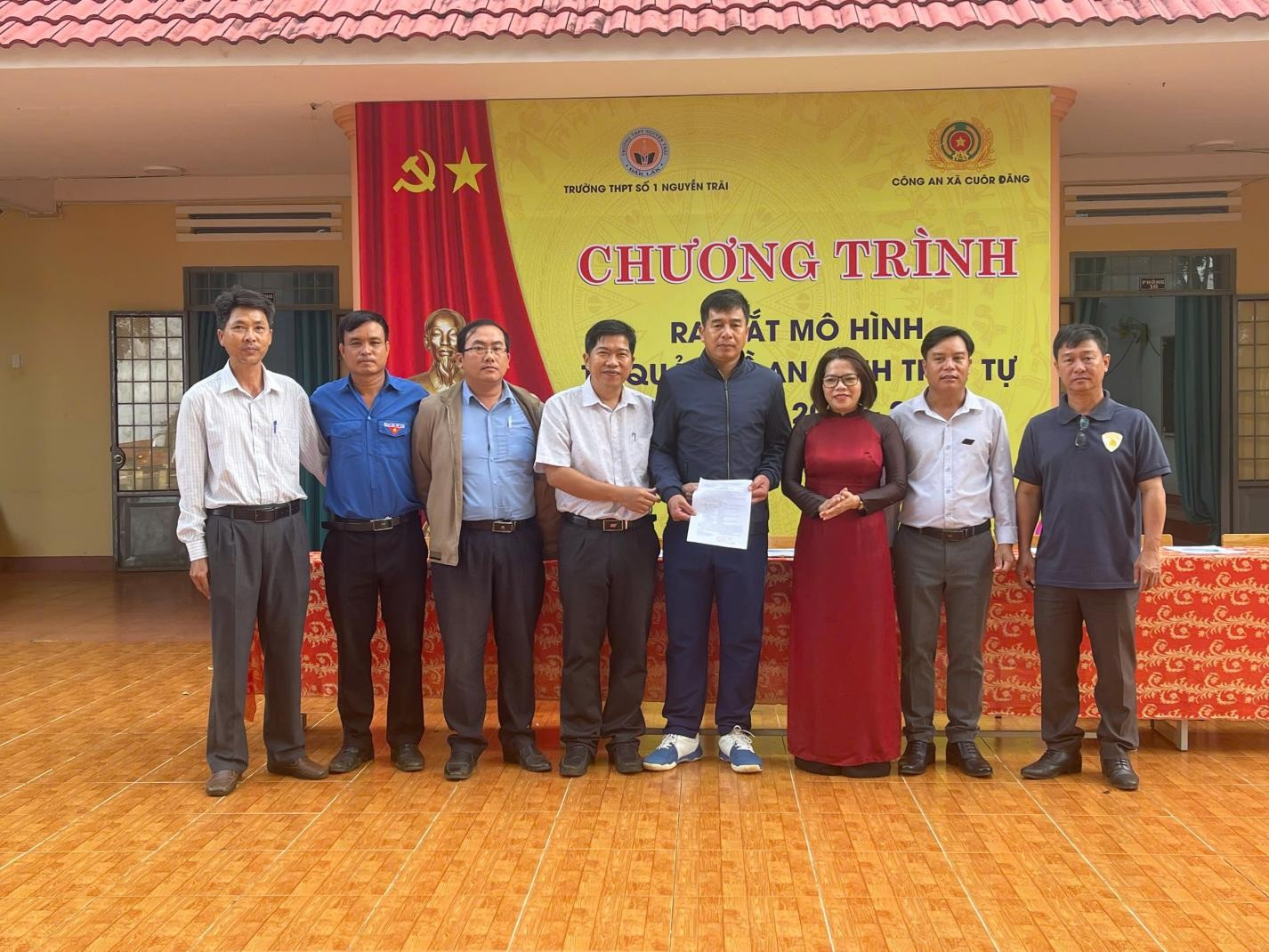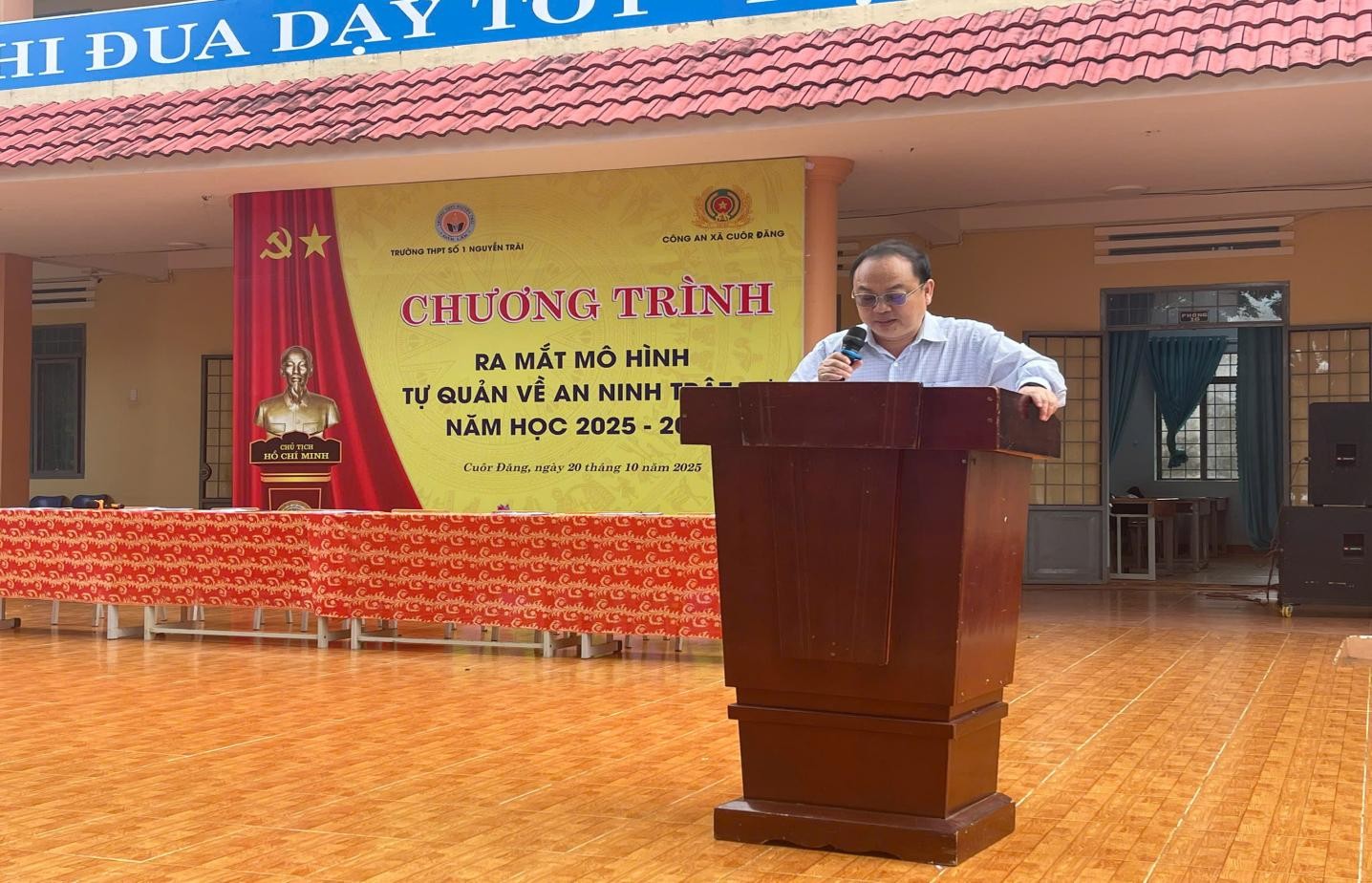 Nhằm tăng cường sự lãnh đạo của Đảng đối với phong trào Toàn dân bảo vệ an ninh Tổ quốc (ANTQ), góp phần đảm bảo tốt an ninh, trật tự và xây dựng môi trường giáo dục an toàn, lành mạnh, sáng ngày 20/10/2025, Trường THPT Số 1 Nguyễn Trãi phối hợp cùng Công an xã Cuôr Đăng tổ chức Chương trình ra mắt mô hình “Trường THPT Số 1 Nguyễn Trãi tự quản về an ninh trật tự”.