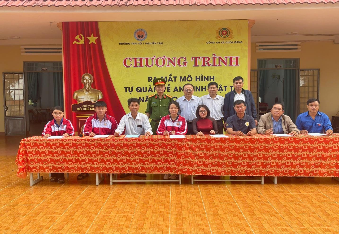 Sau phần ra mắt, đại diện nhà trường và Công an xã Cuôr Đăng đã tiến hành ký cam kết phối hợp thực hiện mô hình, trong đó các bên thống nhất: