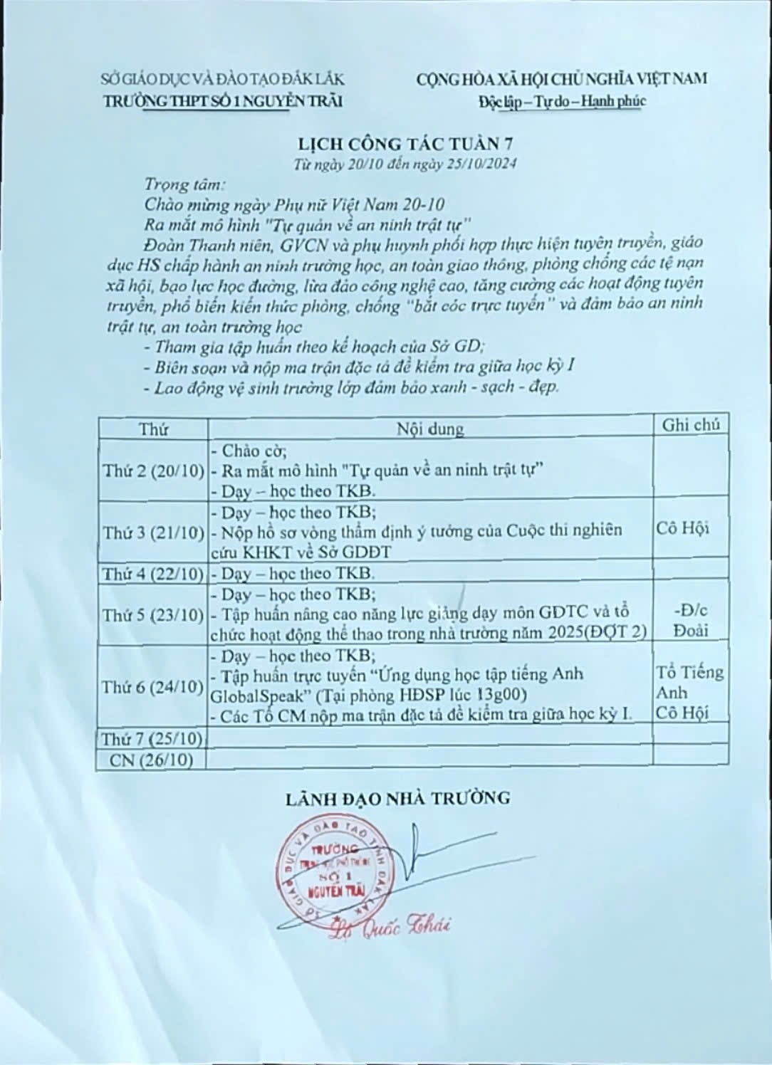 • Lịch kế hoạch tuần 6 (13/10/2025)