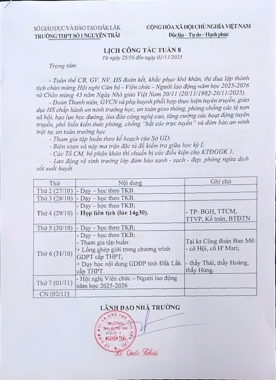 • Lịch kế hoạch tuần 6 (13/10/2025)